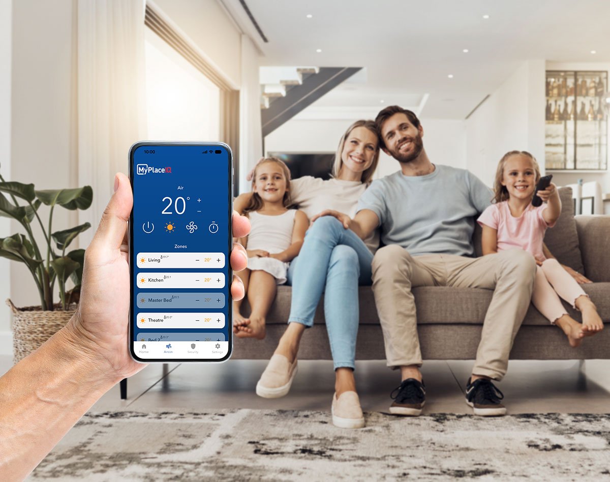 Enjoy a complimentary MyPlace IQ upgrade with every ducted Smart Home Air-Conditioning System, giving you seamless wireless control, smarter energy use, and a fully connected home experience at no extra cost, all from the convenience of your phone, making everyday comfort easier, faster, and more efficient.